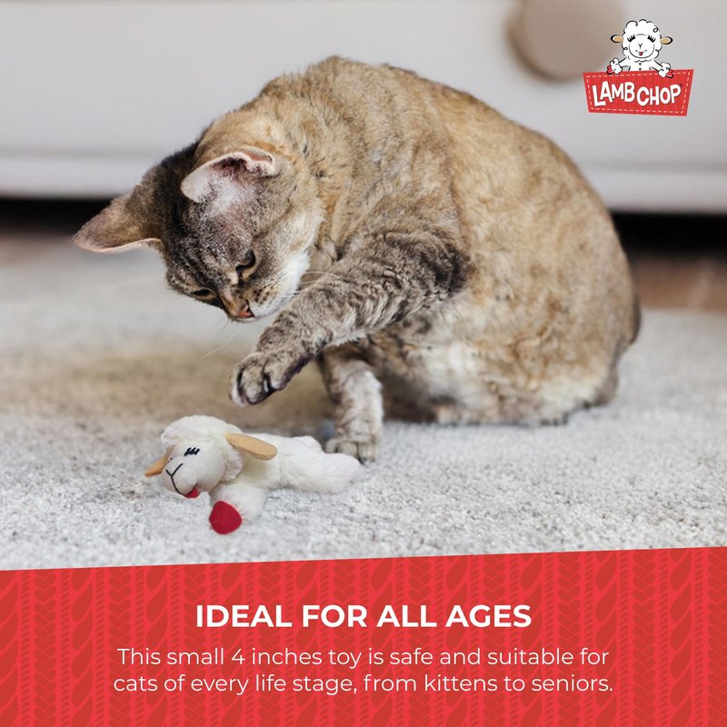 Multipet Lamb Chop Cat Plush Toy w/Catnip - Small Cat Chew Toy for All Cats - Extra Soft Plush Cat Toy - Stuffed Animal Kitten Toy for Cuddling & Playing - Cute Pet Toy (4”, Cream)