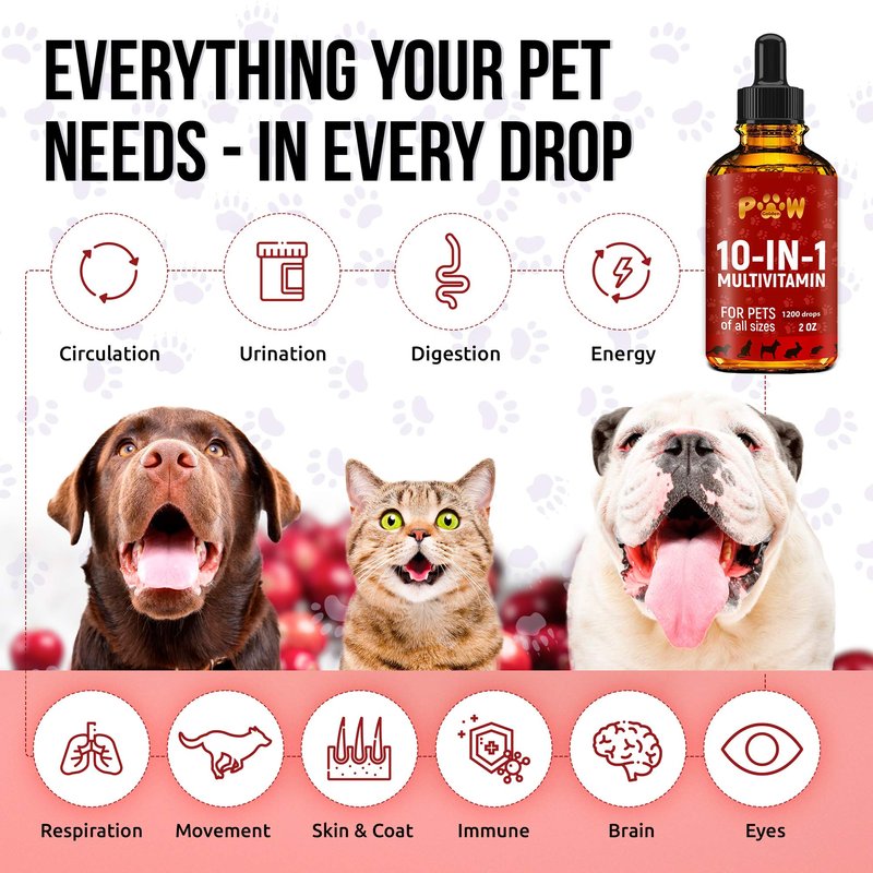 Each component has been carefully selected from natural sources to achieve optimal absorption, distribution and support. Here are all 10 systems you won't have to worry about with a 10 in 1 multivitamin for cats and dogs:
