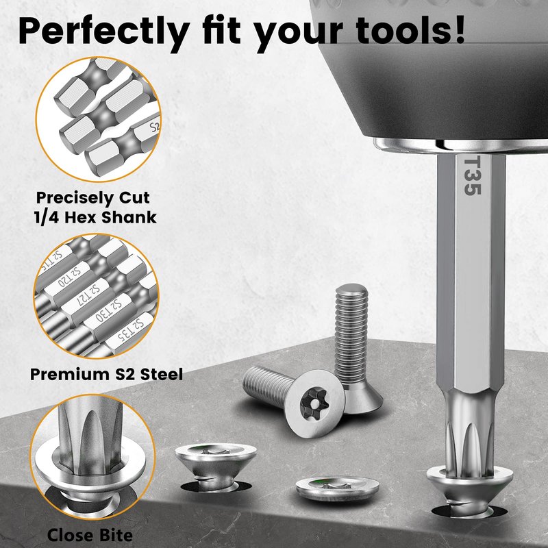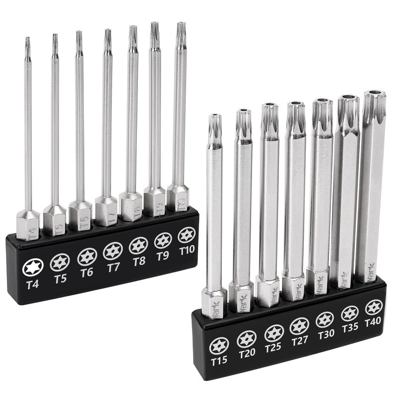- WELL-EQUIPPED BITS SIZE - 14 piece torx screwdriver set in the following size: tamper proof torx bits of T4, T5, T6, T7, T8, T9, T0, T5, T20, T25, T27, T30, T35, T40