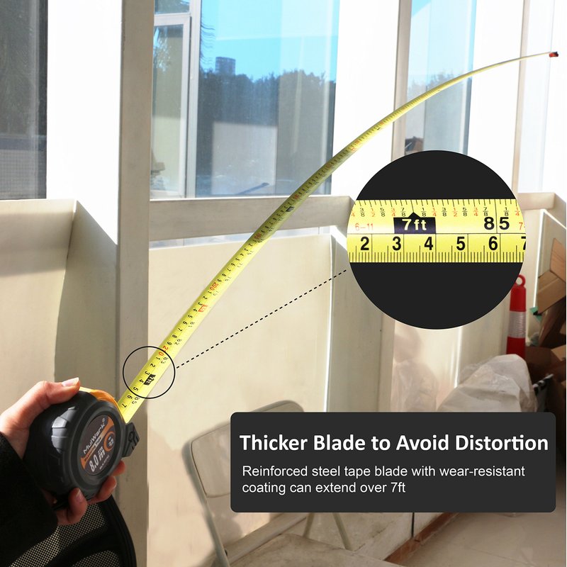 - ▲PREMIUM GRADE - This portable flexible retractable decimal measuring tape ruler(8m long, 25 mm wide, 0.15mm thick tape measure) is impact resistant, rust proof, chemical odor free and can horizontally stand out till 7ft and vertically till 13ft without the tape collapsing or snapping