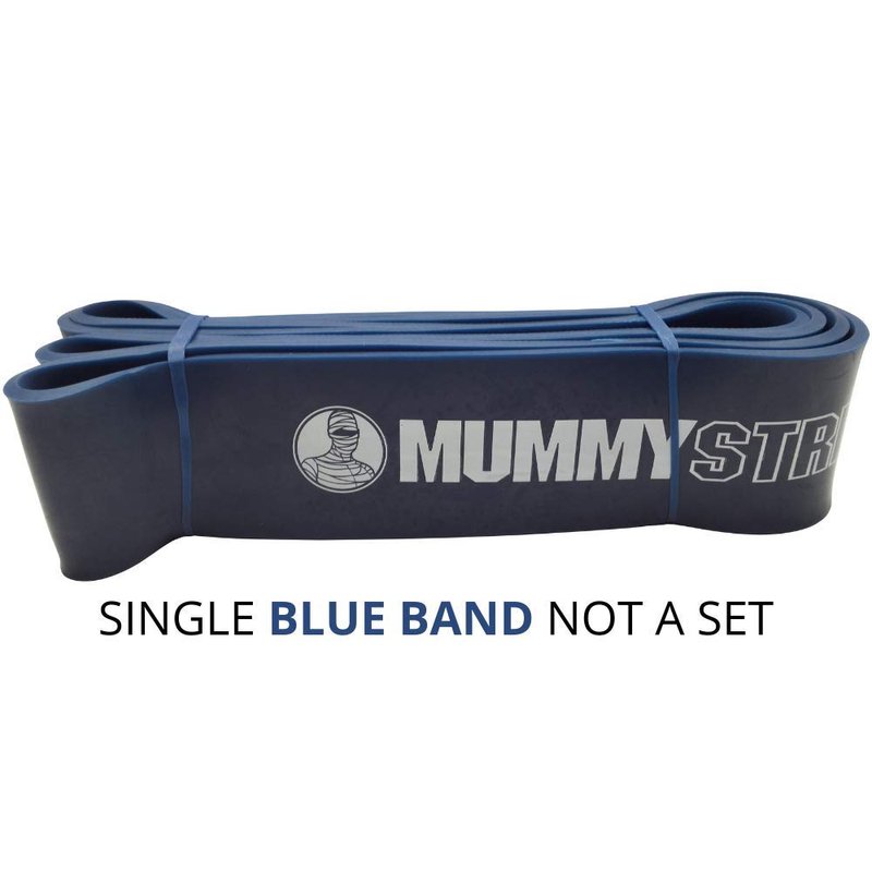 MummyStrength Resistance Bands for Men and Women. The Best Stretch Band for Pull Up Exercise and Powerlifting. Works with Any Pull Up Bar or Station. Single Band. Workout Guide Included - Blue
