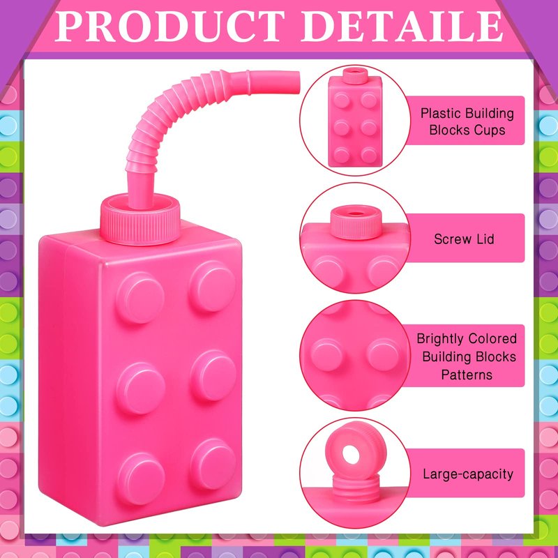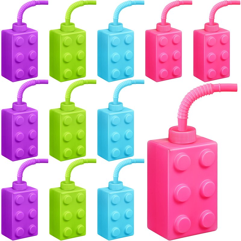 - What's Included in the Package: you will receive 12 pieces of building blocks cups in 4 colors, including pink, blue, purple, and green, equipped with 12 pieces corresponding colored straws, sufficient quantity can meet your drinking needs