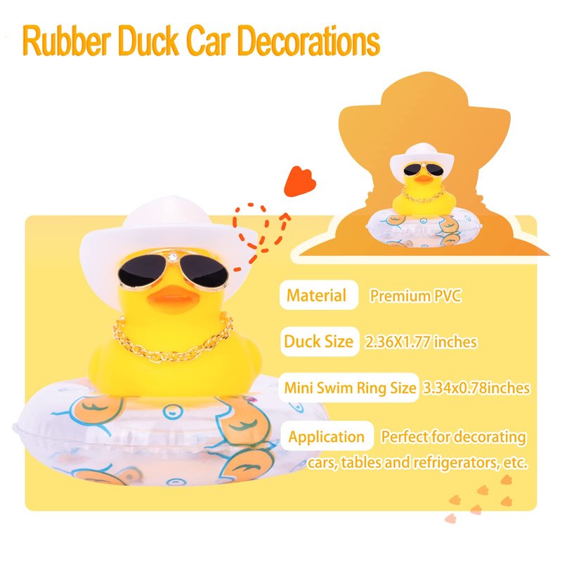 - Unique Duck - These rubber duck car decorations can squeak when pressing them, which can be a relaxing and pressure-relief toy to release your stress. And these mini swimming rings are exquisite and light, cute and funny.