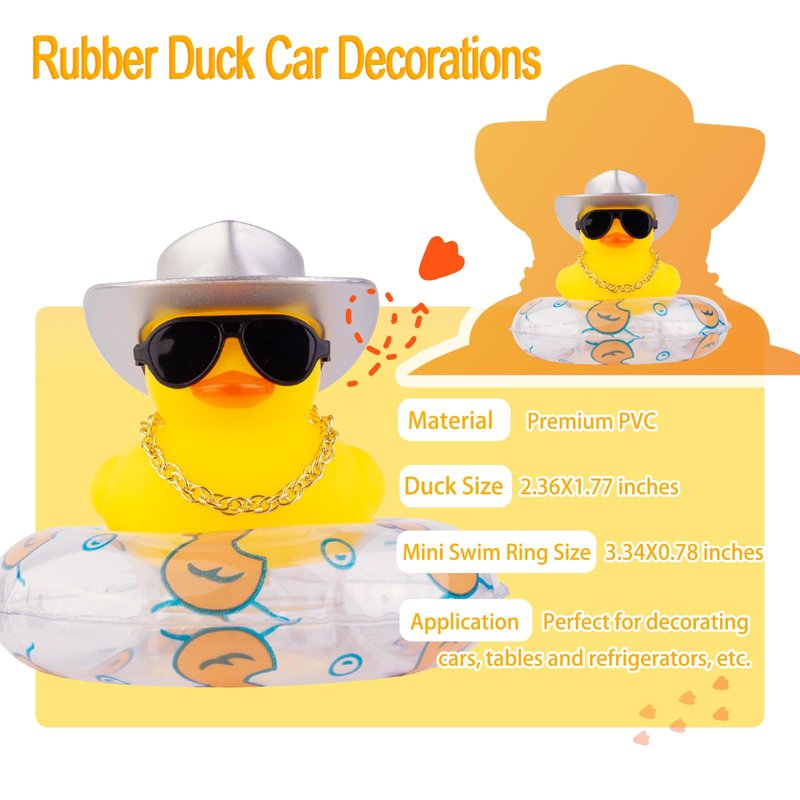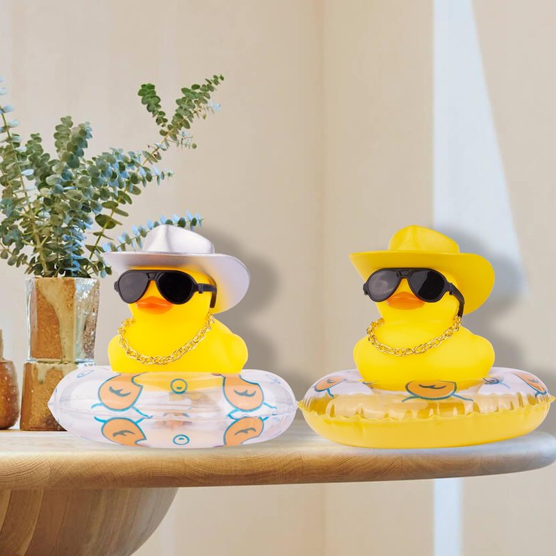 MuMyer 2Pcs Duck Car Dashboard Decoration with Mini Swim Ring Cowboy Hat Necklace and Sunglasses