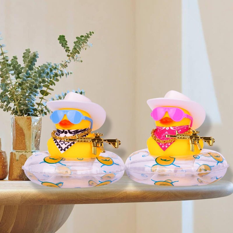 MuMyer Cowboy Duck Car Dashboard Decoration Swim Ring Car Rubber Duck Decoration Accessories with Mini Swim Ring Cowboy Hat Scarf Necklace and Sunglasses(D2-2 Bs-B_W&White)