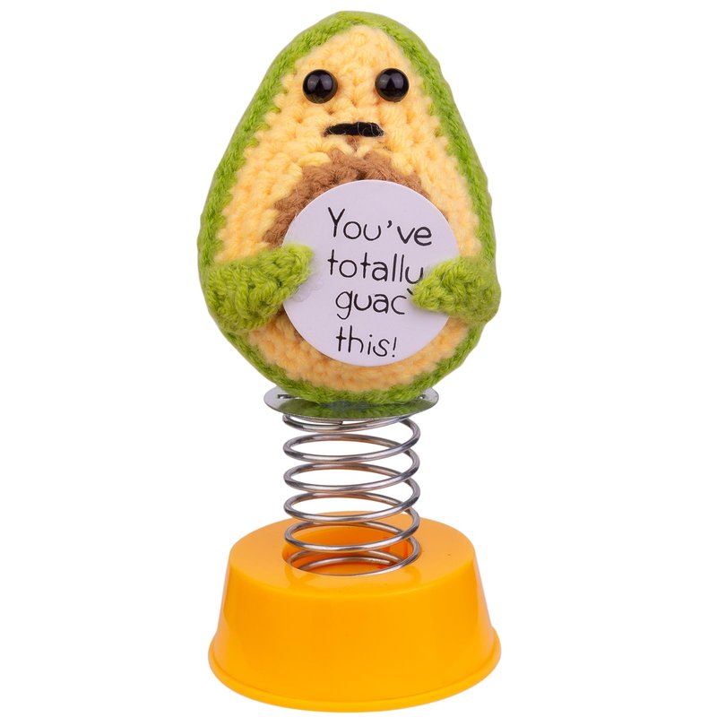 - 🥑 FUNNY POSITIVE DOLL: The positive avocado doll is designed with an emotional encouragement card and spring base. It will provide you with strong emotional support when you feel pressure, anxiety, sadness, and tension. What's even more interesting is that it will shake while driving.