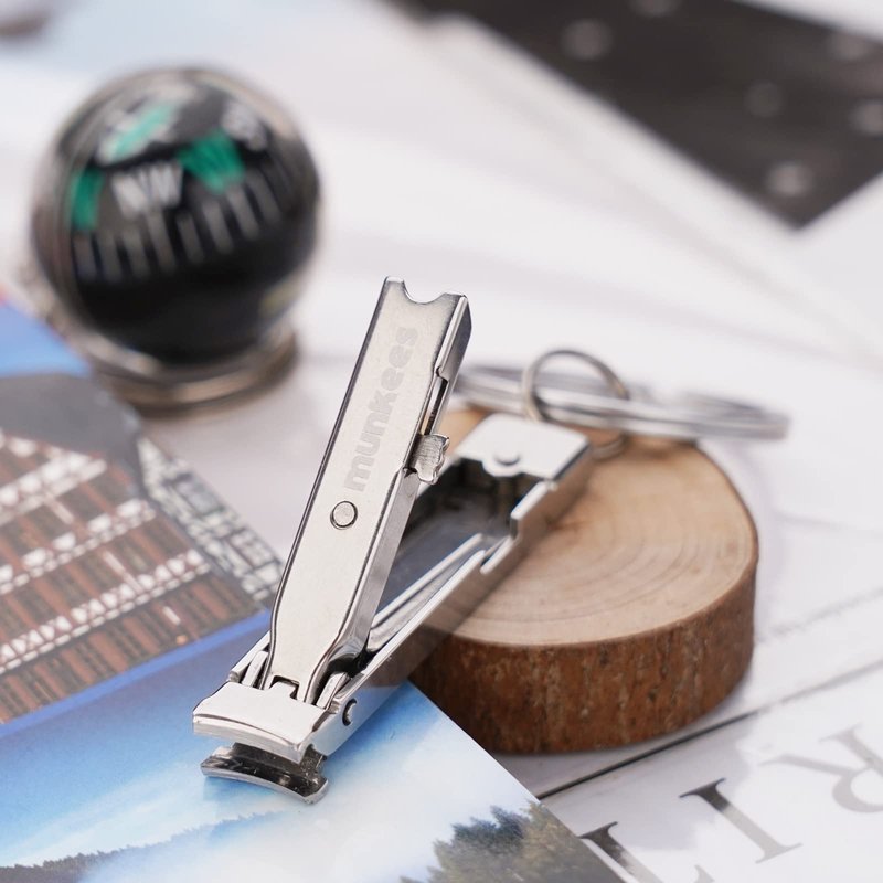 Munkees ultra-thin nail clippers keychain is the perfect gift for anyone on the go. A very strong and durable product with a small size of only 2 inches when folded. Easy to use and made to fit comfortably in your hand or on your key ring. This portable product is a great accessory and will help you be prepared for any small or quick toenail or fingernail you need to cut or trim. Munkees supplies an assortment of custom keychains. Our fun and functional keychain accessories are the perfect addition to your key ring, backpack or emergency travel kit.