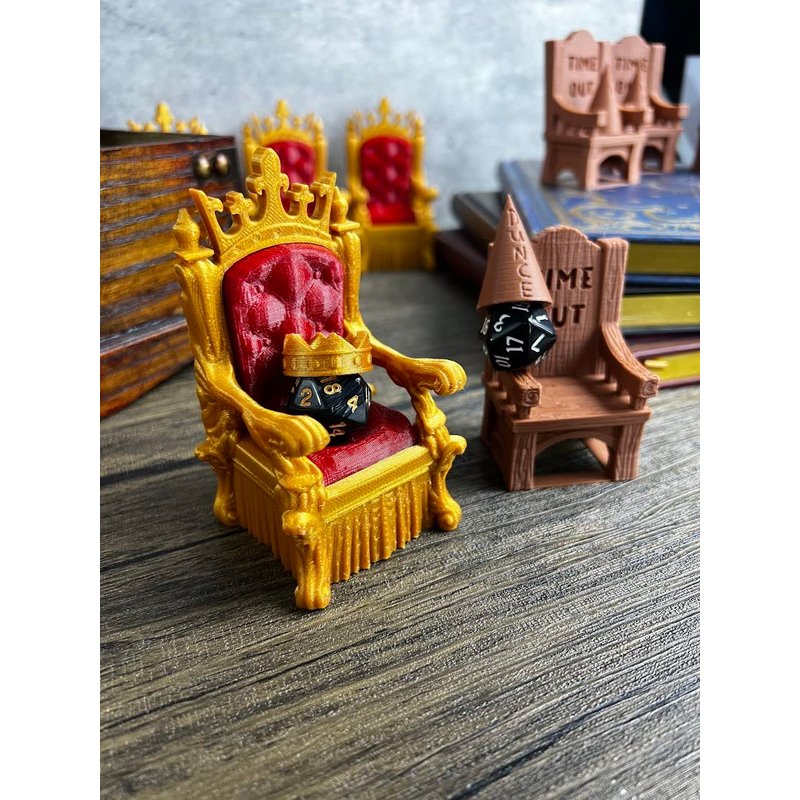 - Punish your dice on the chair of shame with its dunce hat. Reward your dice for rolling well with the crit crown and golden throne.