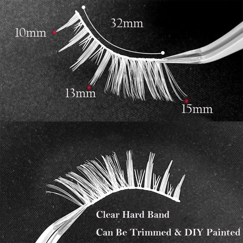 - [EASY APPLICATION] : The newly upgraded transparent invisible eyelash band can be cut into clusters of eyelashes, and can also be DIY dyed. Cosplay white false eyelashes just for you., The transparent eyelash stems will not look obtrusive ;