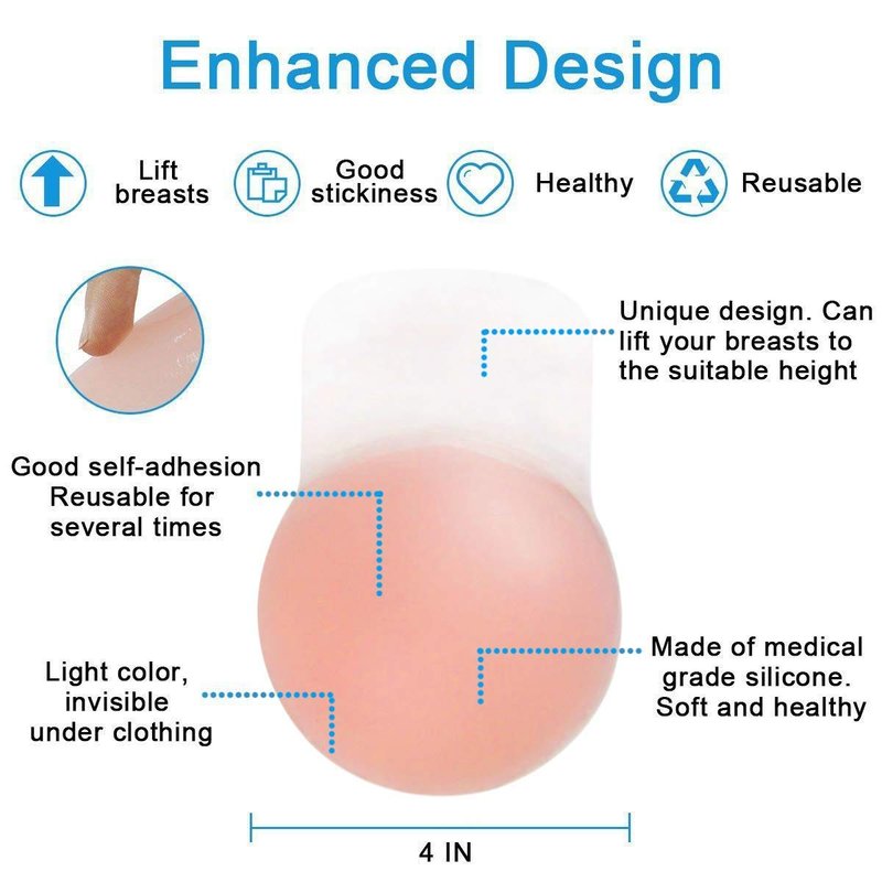 Muryobao Reusable Silicone Nipple Covers with Breast Lifts are great to protect and hide nipples. Keep your breasts lifted, supported, and perky. These pasties petals are perfect solutions for Tops, Blouse Shirts, Strapless, Backless, Deep-V, Wedding Dress, Swimwear, and Gowns.
