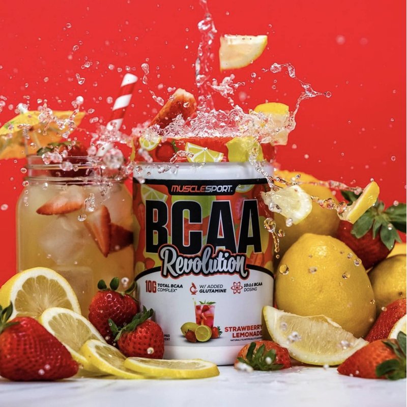 Musclesport BCAA Revolution Amino Acid Powder Supplement for Men & Women - Intra Workout Training Complex - Recovery Supplemen (Strawberry Lemonade, 30 Servings)