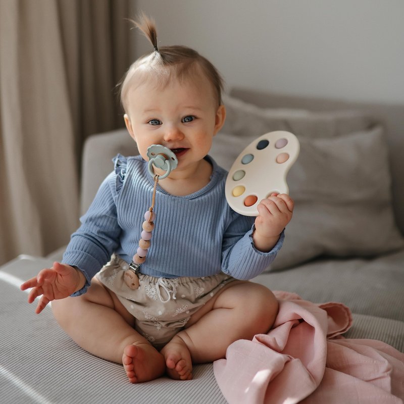 What's Included: 1x Paint Palette Press Toy Made with little hands in mind, our paint palette press toy encourages sensory exploration and the development of fine motor skills with its simple design and soft colors. Featuring food grade silicone and a BPA-free plastic frame, children will tap into learning as they press the bubbles and hear a gentle pop. This toy is inspired by arts and crafts and holds the attention of babies and older kids with endless opportunities for play. Details Recommended to children ages 10+ months BPA/PVC/Phthalate-free 100% Food grade silicone Care To clean, wash with warm, soapy water and let air dry.