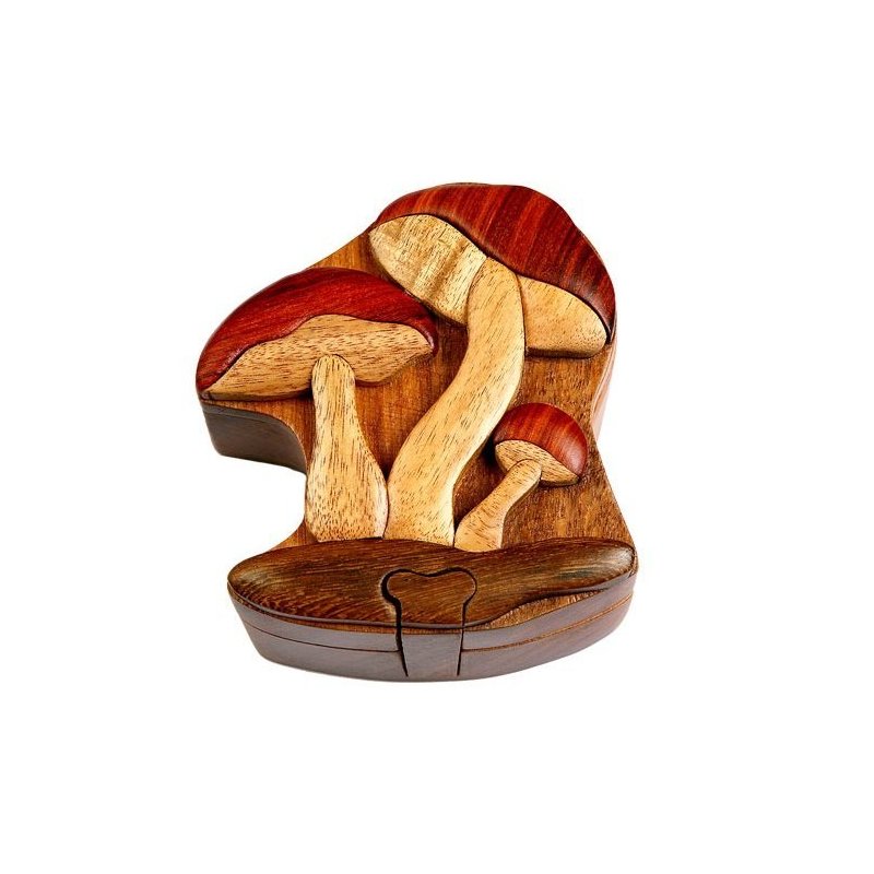 Mushroom - All Natural Wood Intarsia Puzzle Box - Handcrafted with Secret Compartment