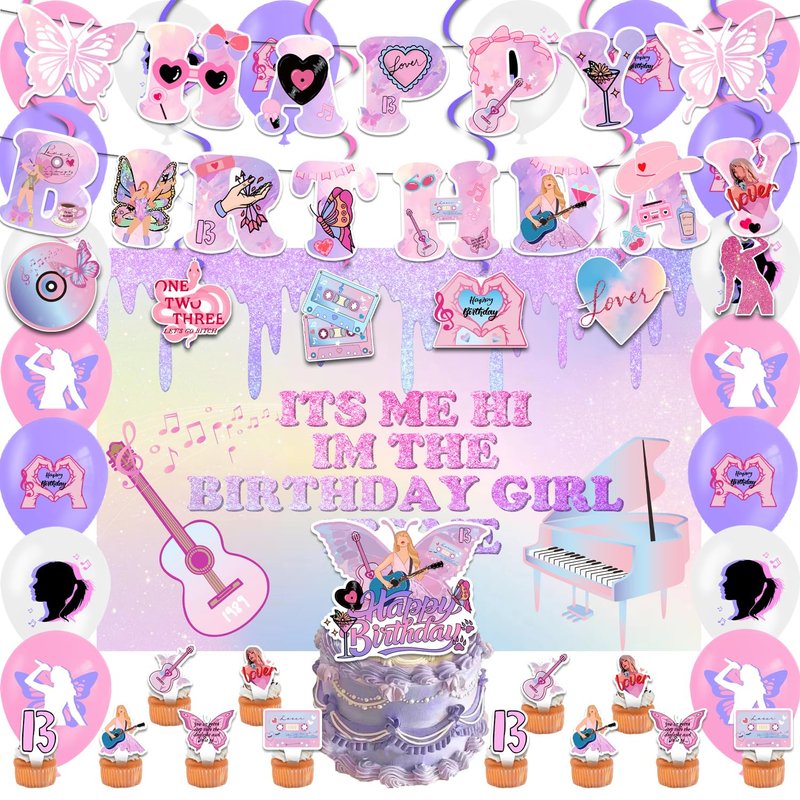 Music Birthday Party Decorations - Singer Happy Birthday Banner, 'ITS ME' Backdrop, Cake, Cupcake Toppers, Hanging Swilrs, Balloons for Fans Music Theme Party Supplies