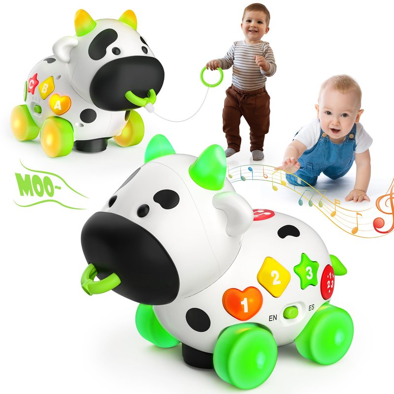 - Baby Crawling and Walking Toys: This music cow toy is not just a motorized crawling toy for baby 6 7 8 9 12 months, but a pull-along toy for toddlers age 1-2, designed to motivate and accompany your baby through crawling and walking stages.