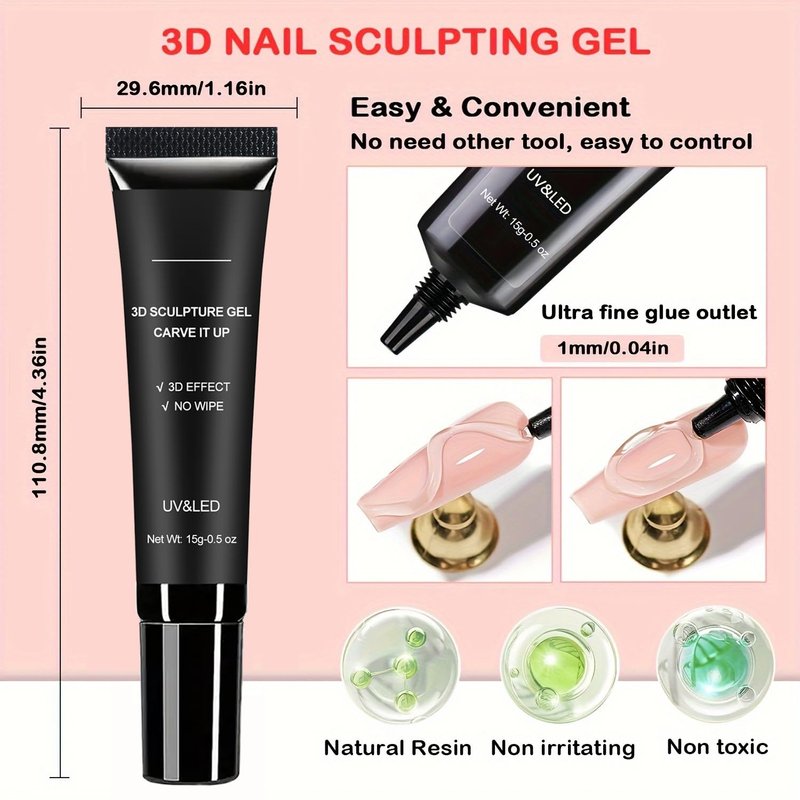 - 【Easy To Carving Nail Pattern & Beginner-Friendly】This Clear 3D sculpture gel is used in nail art that even beginners to effortlessly create the shapes they want. You don't need any other tools or brushes for apply this 3D gel, just squeeze and create the shape directly.It is easy to control and can be adjusted before curing,ensuring precise and professional results.