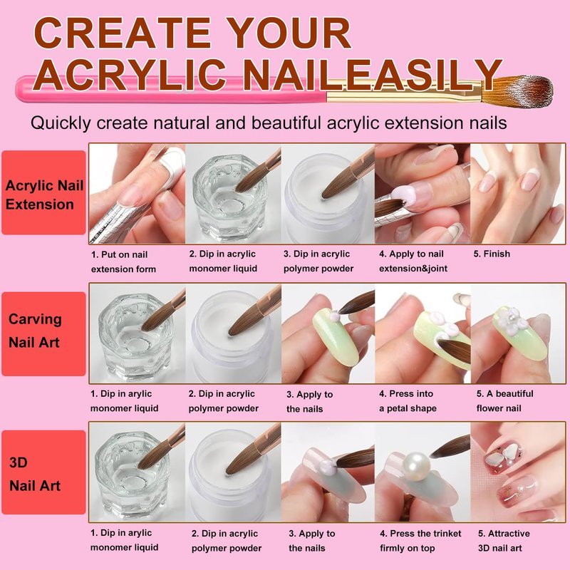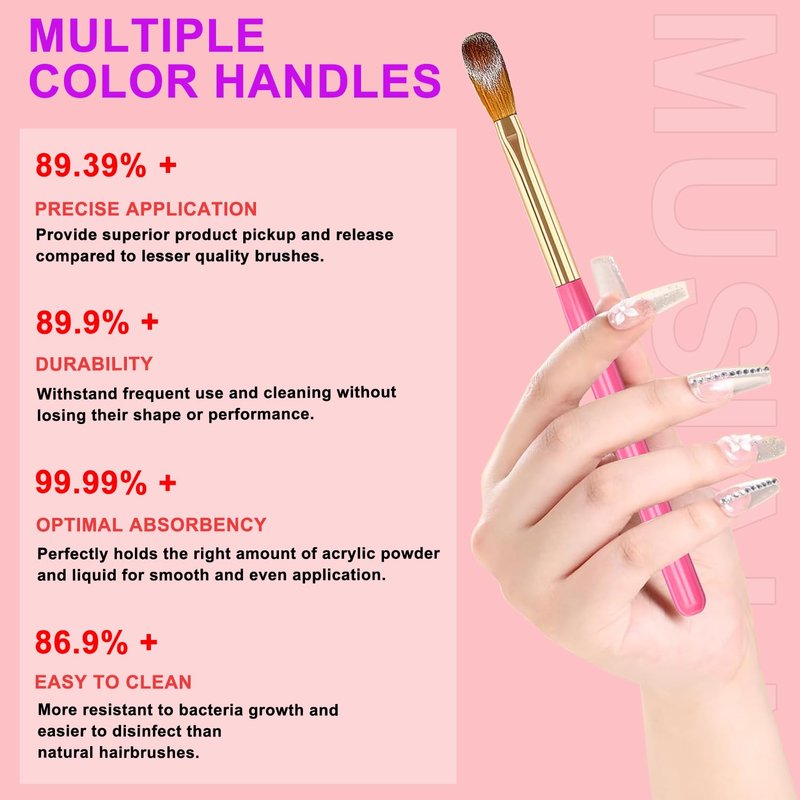 - Premium Quality & Durable : This acrylic nail brush is made of 3A+ high-quality nylon bristles and good gathering properties,offering you a smooth application.The Nail Brush adopts a metal stamping design, which firmly locks the brush head and handle, effectively preventing the hair of the nail brush from falling off and the handle from being damaged, and can be used for a long time and excellent comfort grip will make it to your favorite nail art tool.