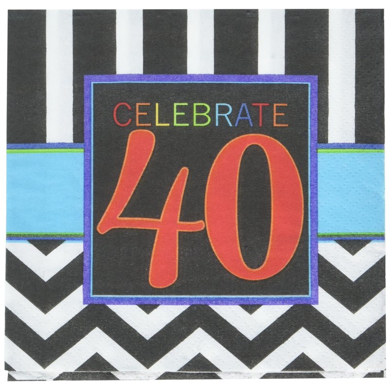Must-Have Chevron and Stripes 40th Birthday Party Beverage Napkins Tableware, Pack of 16, Multi , 5"x5" Paper