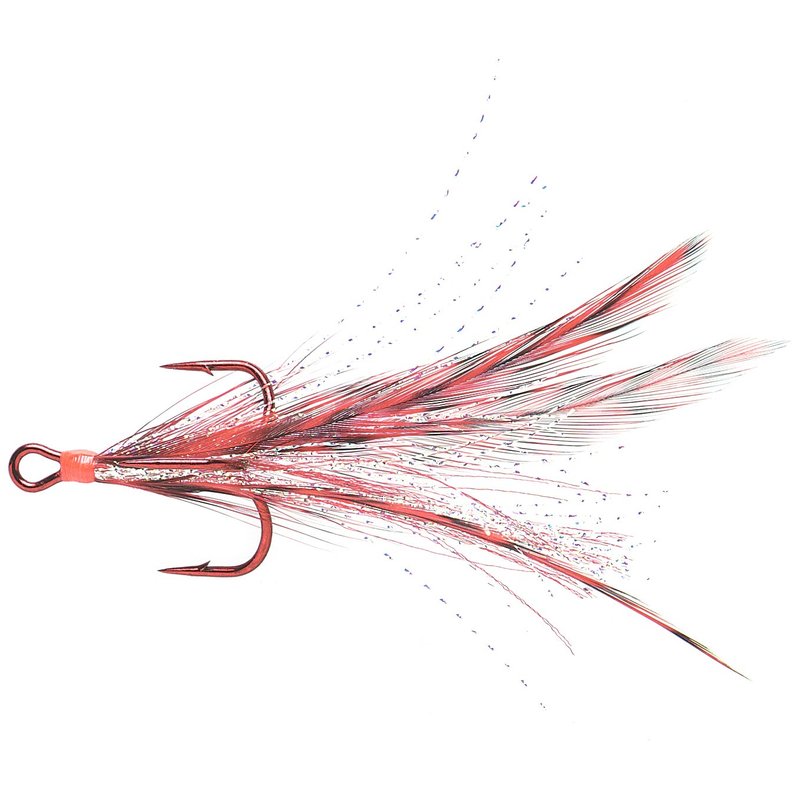 - DRESSED: The Mustad dressed trebles feature a total of six hand tied red Grizzly hackle feathers and additional strands of Flashabou Mirage, which adapts the surrounding colors, giving the hook a lifelike baitfish action.