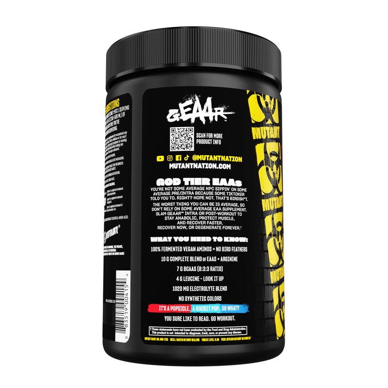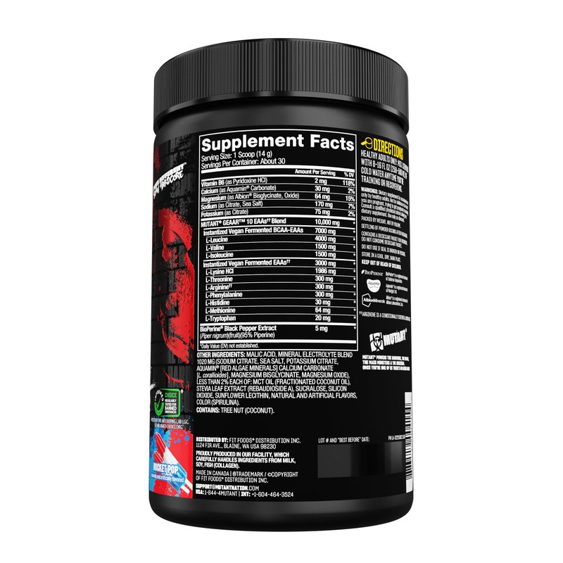 Mutant GEAAR - 9.4g of EAA Powder + Arginine, 7g BCAAs, 4g Leucine, Electrolytes, Coconut Water, No Artificial Colors or Flavors, Delicious Taste - 30 Servings - Rocket Pop - 400g