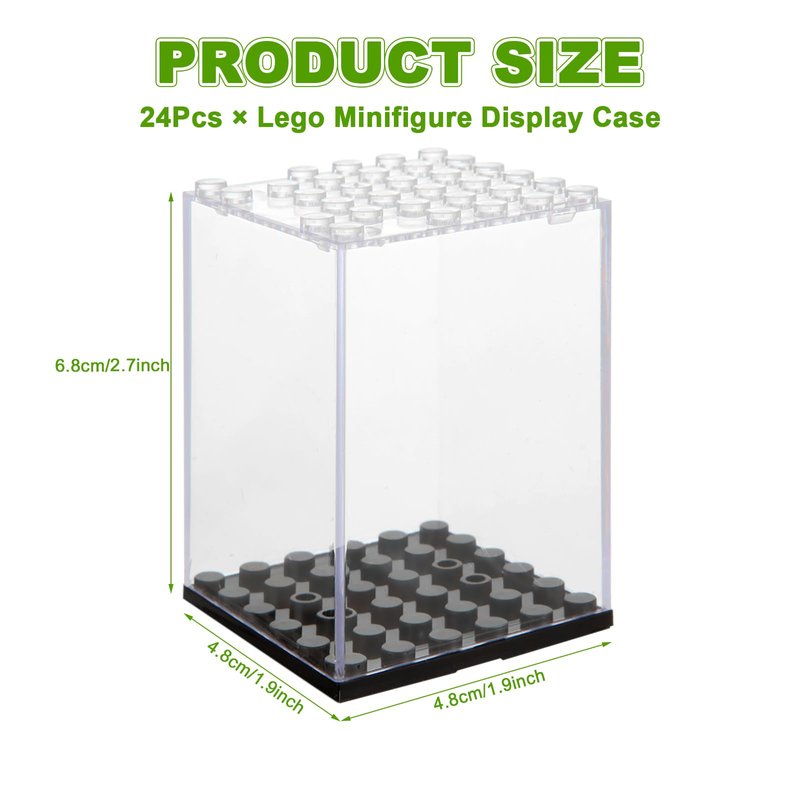 MUXHEL 24 Pcs Minifigure Display Case, Acrylic Small Action Figure Toys Storage Case, 2.7”×1.9”×1.9” Stackable Building Block Display Case for Lego Minifigure, Action Figures