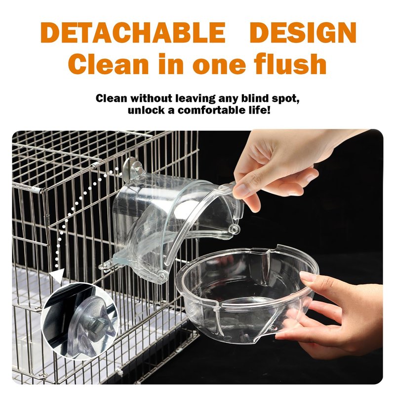 - 【CLEAN IN ONE FLUSH】Bird bath for cage parakeet,adopts detachable design,easy to clean,no dead corners.Just disassemble and rinse directly with water,free hands.
