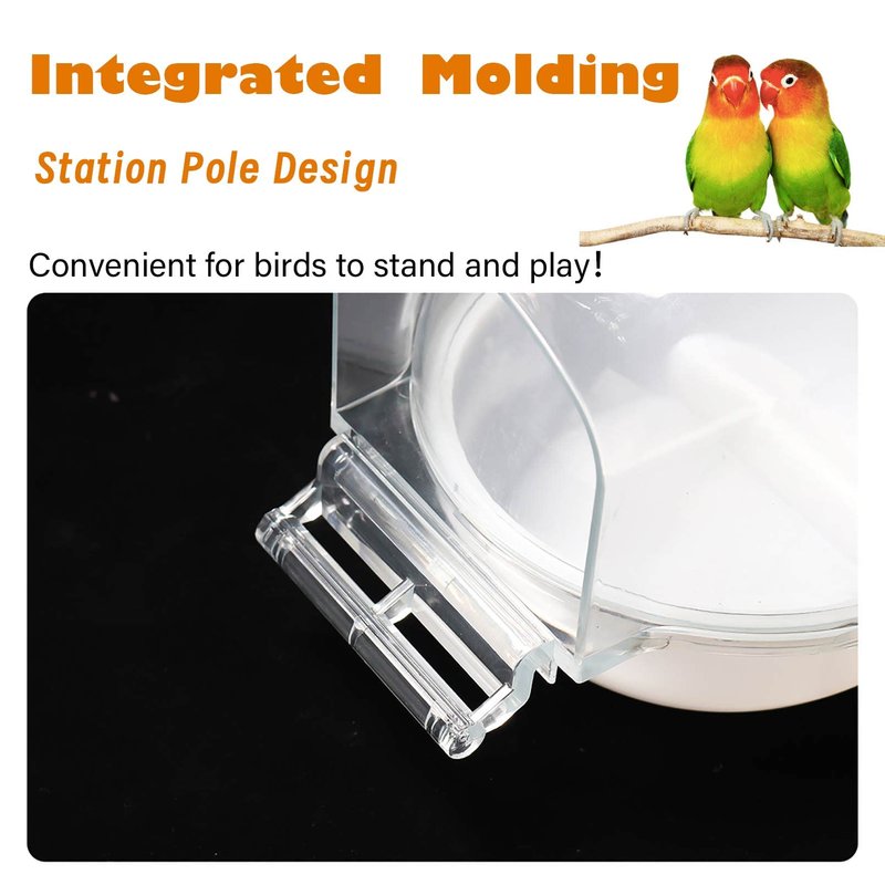 - 【PRODUCT SIZE】Bird Bath Size:6.30x6.30x5.51Inches Suitable for Small Bird Canary Parrots Crested Myna Cockatiel Lovebird or other small birds. (Note: Not suitable for large birds,please bid according to the size of your pet)