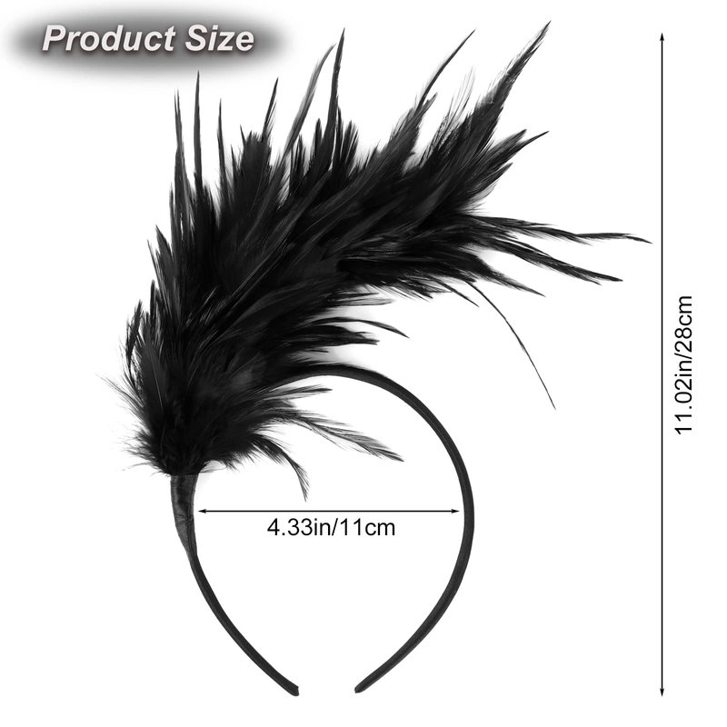 MWOOT Feather Headband 1920s Flapper Headband Vintage Classic Party Theme Wedding Fascinator Feather Headband (Black)