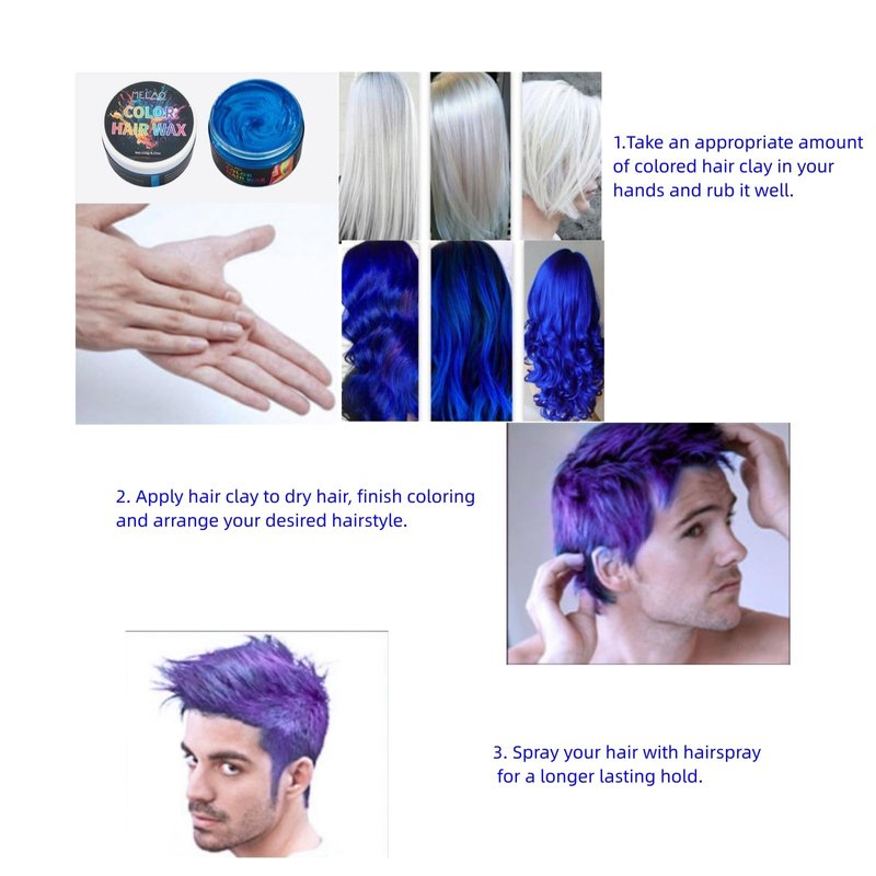 - 【Easy to use】Easy to use hair coloring creams, just put them in the palm of your hand and rub them in, apply hair wax to areas that need to be styled, create any hairstyle with your hands, and spritz your hair with hairspray for a longer lasting style.