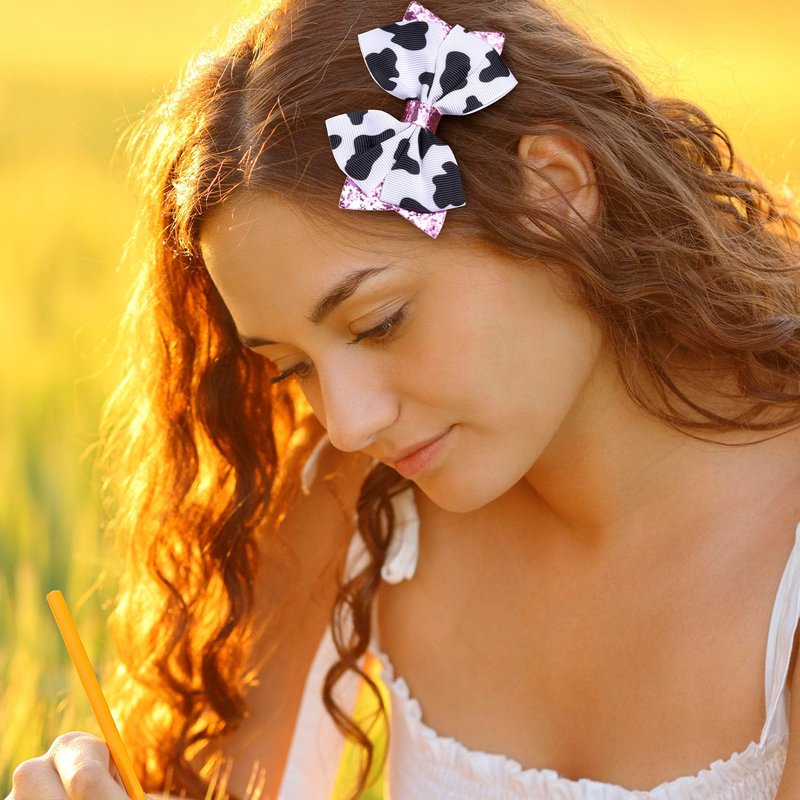 - 【Suitable for hairstyle 】Cow print hair bow clips, wrapped in 2 pieces, they are very suitable for girls, suitable for decorating various hairstyles: long hair, short hair, curly hair, and any braid, adding a playful and cute touch to your girl.