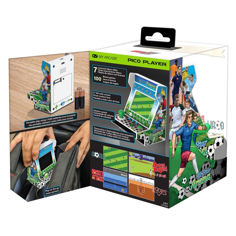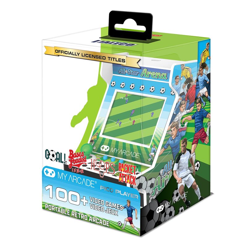 MY ARCADE All-Star Arena Pico Player- 3.75" Fully Playable Portable Tiny Arcade Machine with 107 Retro Games, 2" Screen Color Display, Battery Powered,White
