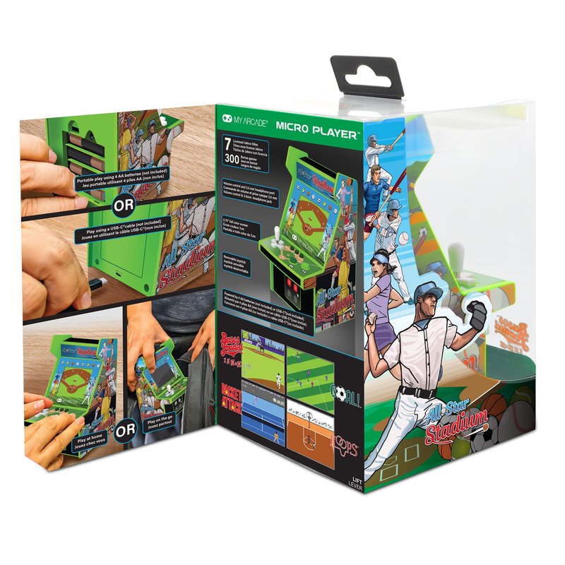 My Arcade All Star Stadium Micro Player- Fully Portable Mini Arcade Machine with 307 Retro Games, 2.75" Screen,White