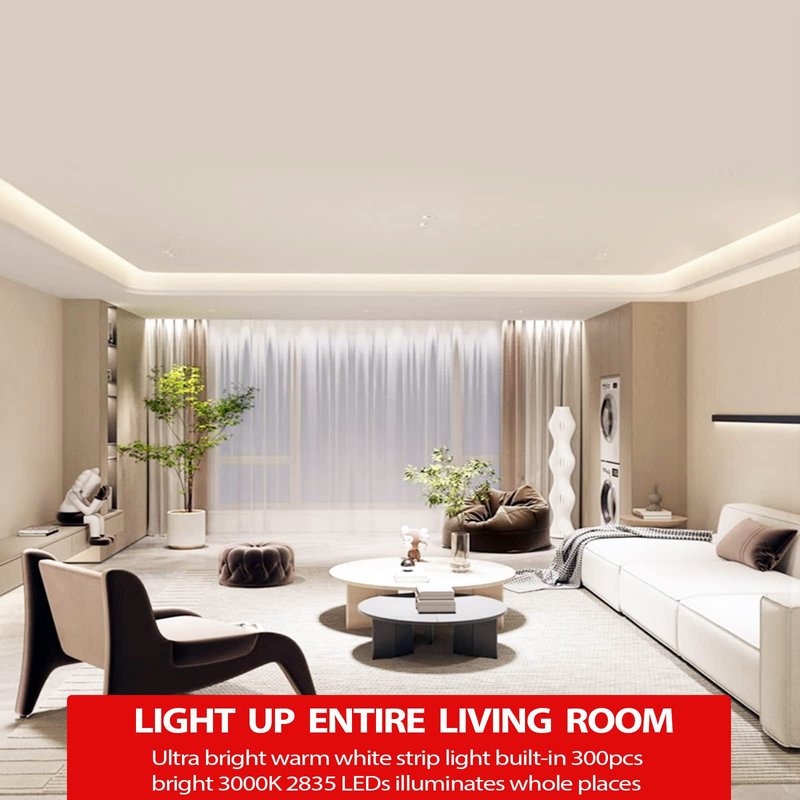 - Bright and Eye Protection Warm White: 300pcs high quality leds built on FPCB board will give off super bright light to light up your whole room, bedroom, living room, kitchen, mirror, TV, under counter, wardrobe and office, and it is with high color rendering feature(Ra≥70), which will make us see goods real color to better protect eyes