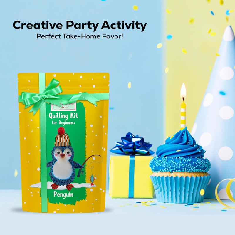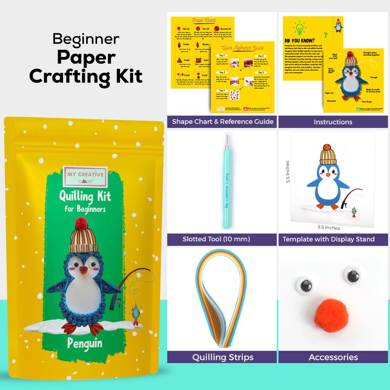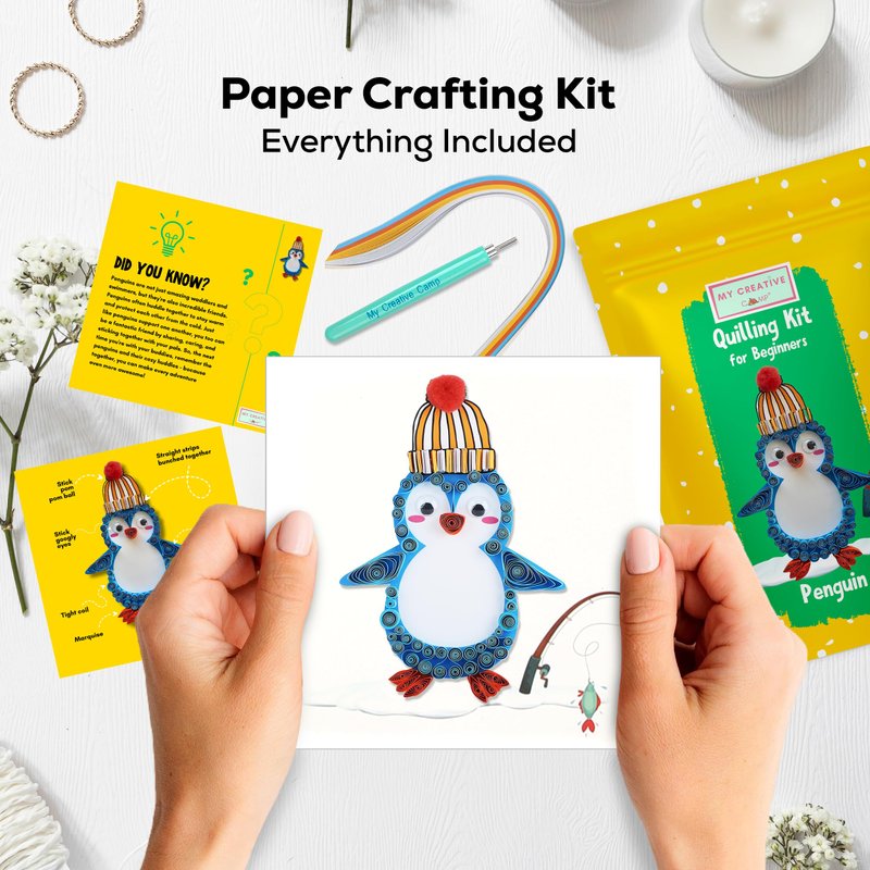 MY CREATIVE CAMP Beginner Penguin Quilling Kit -DIY Paper Quilling Kit for Kids & Adults,Paper Craft Kit,Crafts for Adults,Party Favor,Christmas Stocking Stuffer,1 Project with Instructions & Supplies