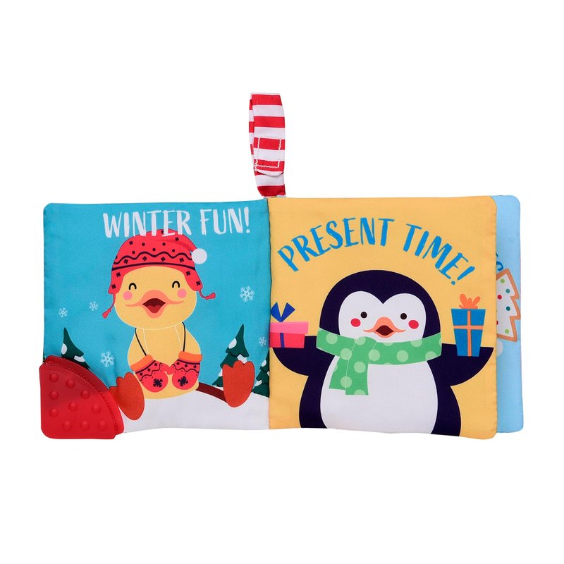 - GREAT TO TEACH AND ENTERTAIN BABY: The Christmas themed soft book features 8 pages inside with playful prints and patterns inside, and is enhanced witha teether for a full sensory experience. The fabric book has 8 crinkle pages for visual and sound stimulation. This activity toy helps teach colors, animals and engages baby’s learning at all stages.