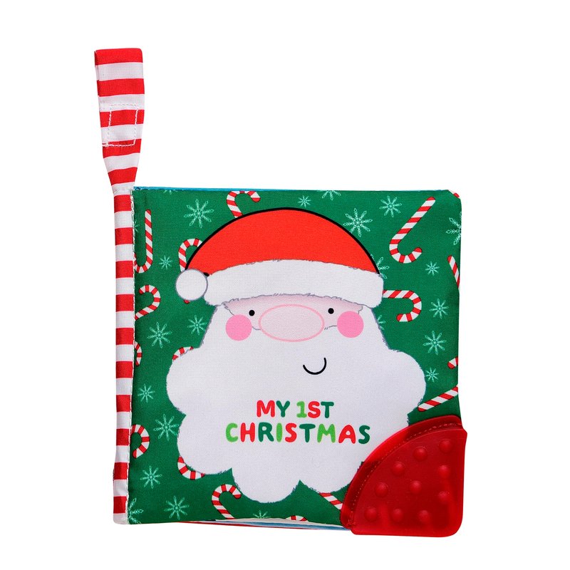 My First Christmas Soft, Crinkle Activity Book with Silicone Teether and Travel Strap, Santa, Green (5 1/2 inch Square)