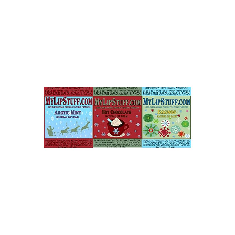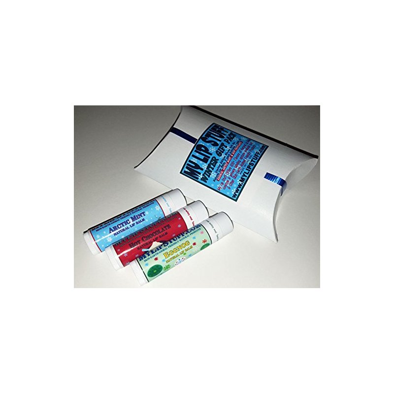 Winter Gift 3 pack includes: Eggnog, Arctic Mint, & Hot Chocolate. ALL NATURAL MY LIP STUFF LIP BALMS! This Amazon exclusive pack makes the perfect gift!