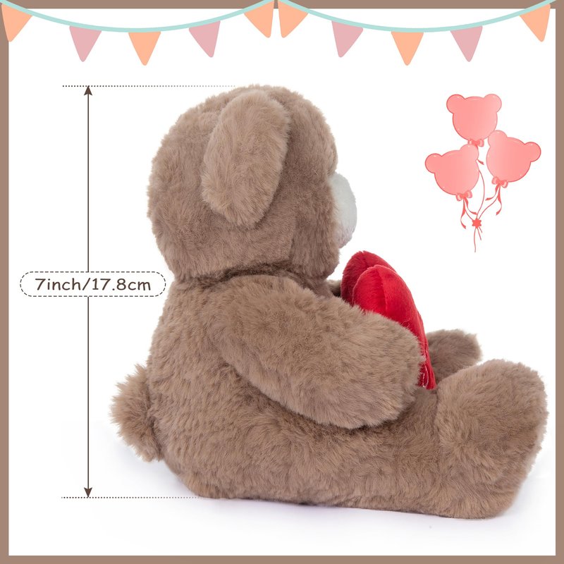 My OLi Valentine's Day Gift for Her 7” Plush Teddy Bear Stuffed Animal Plush Bear with Red Heart Plush Toys Valentines Bear for Babies Girlfriend Wife Mom, Brown