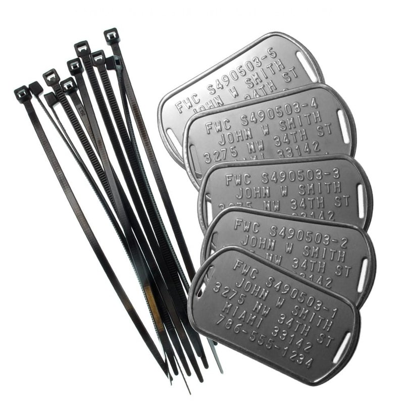 Set of 5 rust-proof customized FWC (Florida Wildlife Commission) Crab Trap Identification tags. Slotted on both sides for securely attaching to your trap with the included UV resistant nylon Zip-Ties. Our tags comply with the FWC regulations which state: The Florida Fish & Wildlife Conservation Commission requires ID tags to be attached to each recreational saltwater crab and fishing trap (up to a maximum of 5) to identify the owner. The information must be legible and be permanently attached to each trap on a saltwater proof tag.
