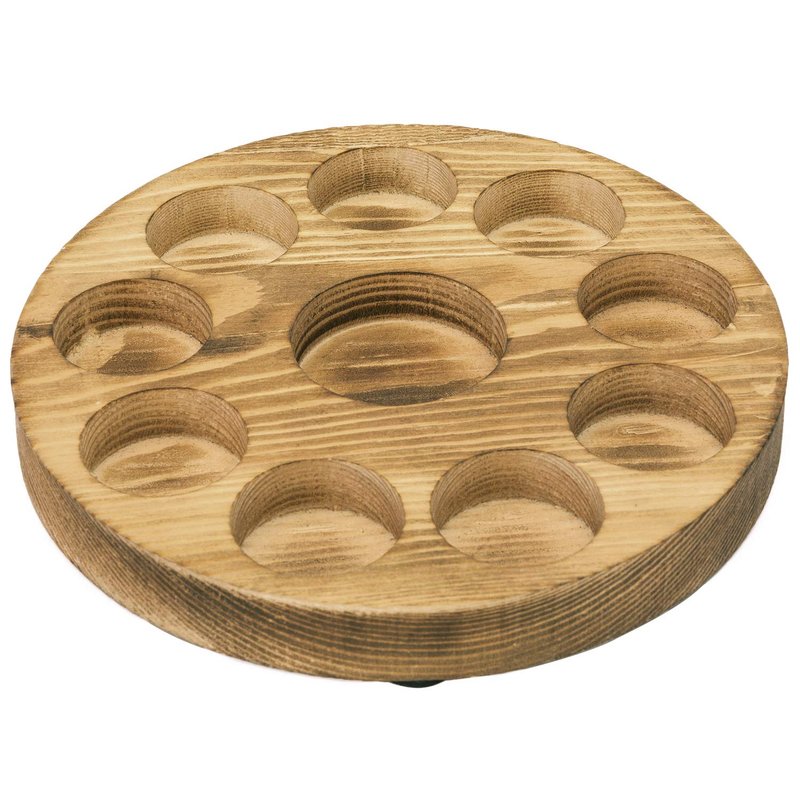 Stylishly display your essential oil, nail polish bottles or lipstick tubes with this round wood storage rack. This rack features 10 slots which can hold bottles and vials ranging from 5 ml to 30 ml in size. Its brown wood construction complements a variety of decors, and its small size lends itself well to display on your dresser, table, or counter top. **Essential oil bottles not included**