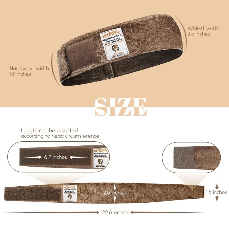 MYKURS Wig Grip Headband -- A Good Helper to Keep Your Wig More Stable! No more worry about the wig slipping embarrassment. Moreover, these wig grip headbands are not only for keeping wigs, hats, turban securely, but also can be used as sports headband and makeup headband, etc. Being made of high quality velvet fabric and exquisite rhombic stitching, the wig band to secure wig provides better effect of anti-slipping. With neat edges, these thin headbands for wigs can avoid bulking in the back. To promise the non-slip effect works, please make sure to wear the wig grip for lace front correctly and in proper fit. Each pack contains 4 pcs of wig grip headbands, which can be used for a long time or shared with your friends. It’s also a great choice as a stocking stuffers for women who love wearing wigs! Here is the way to wear a wig grip perfectly match your wig and enjoy the gorgeous looking with various hairstyles you desired! Step1. Wear a wig cap to cover all of your hair. Step2. Place the wig band for keeping wig in place around the head along the hairline. Step3. Adjust the hook and loop fastener on two ends for proper tightness. Step4. Wear the non-slip wig band and adjust it to the best position. Step5. Put the wig on in the end. Product Information: Color: Brown; Quantity: 4 Pieces Each Pack; Material: 92% Polyester 8% Spandex