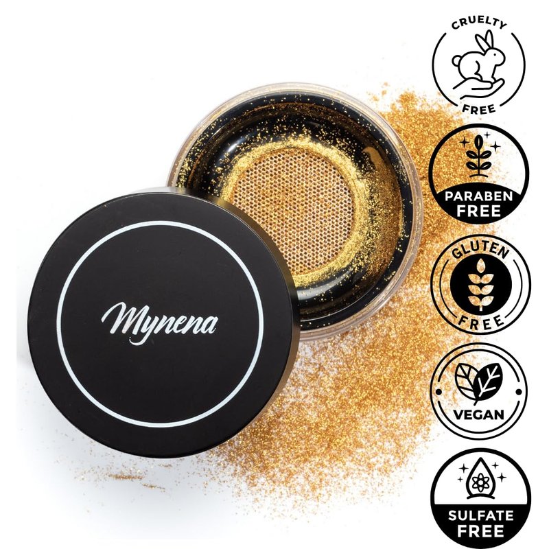 Mynena Yellow Gold Highlighter Makeup Illuminator Face & Body Luminizer Powder | Dazzling Glitter Glow | Perfect for Parties and Festivals