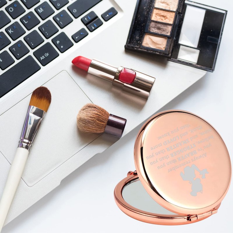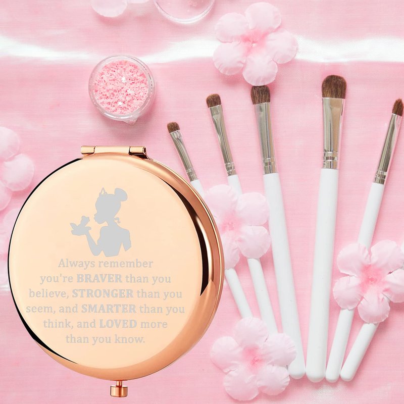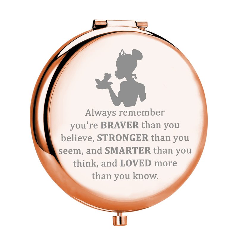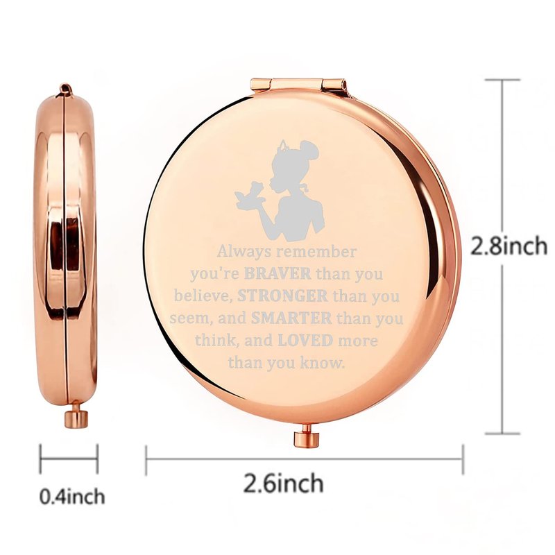 - ✪Compact Makeup Mirror: Engraved with the words "Always remember you're braver than you believe, stronger than you seem, and smarter than you think, and loved more than you know." Show her how much you love her with this unique pocket mirror. Light, thin, small design, very convenient to carry around.