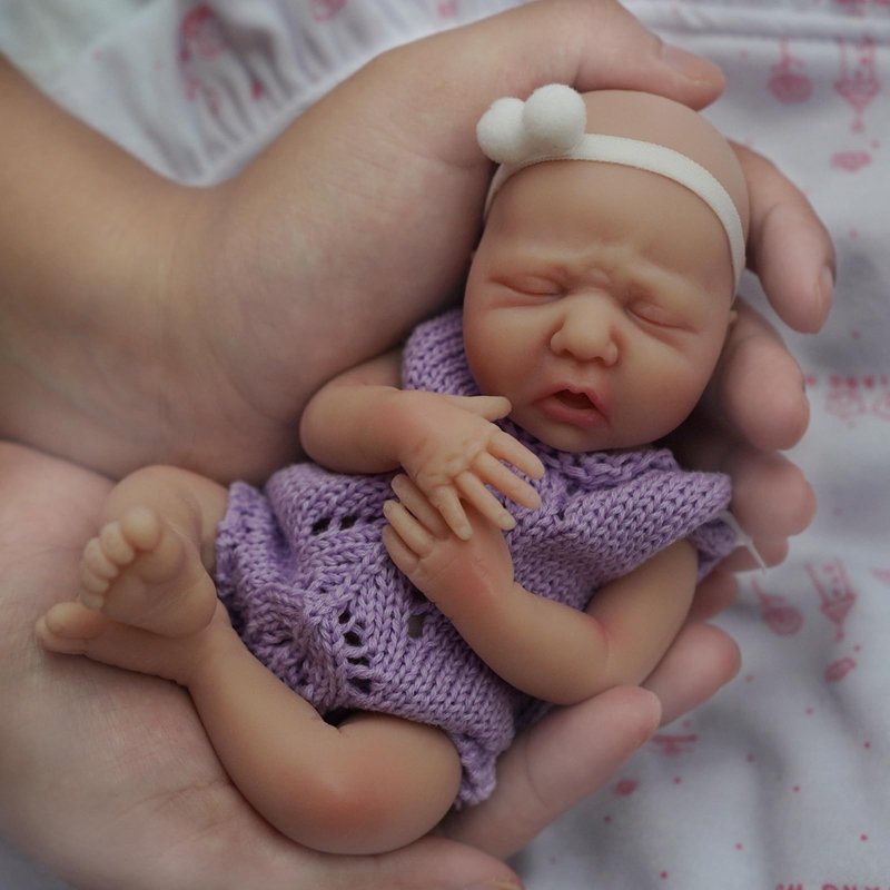 - 【Features】This is a mini reborn baby doll, anatomically correct girl. Size: 7 inch from head to toe, weighs 8.8 OZs, palm-sized, mini and portable; Eyes: can't blink; Washable, easy to care and maintain.