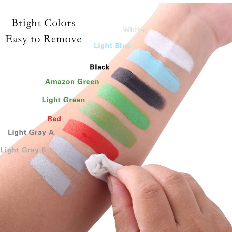 - Bright and Last Long:Highly pigment and stays long.Our face body paints are fantastic for creating highlights, low lights, or gradients between different colors. You also have the capability to build or layer the colors without cracking.Great for skeleton,Day of the Dead,skull,Joker,Ghost,Zombie costume makeup for festivals,halloween,party,christmas.