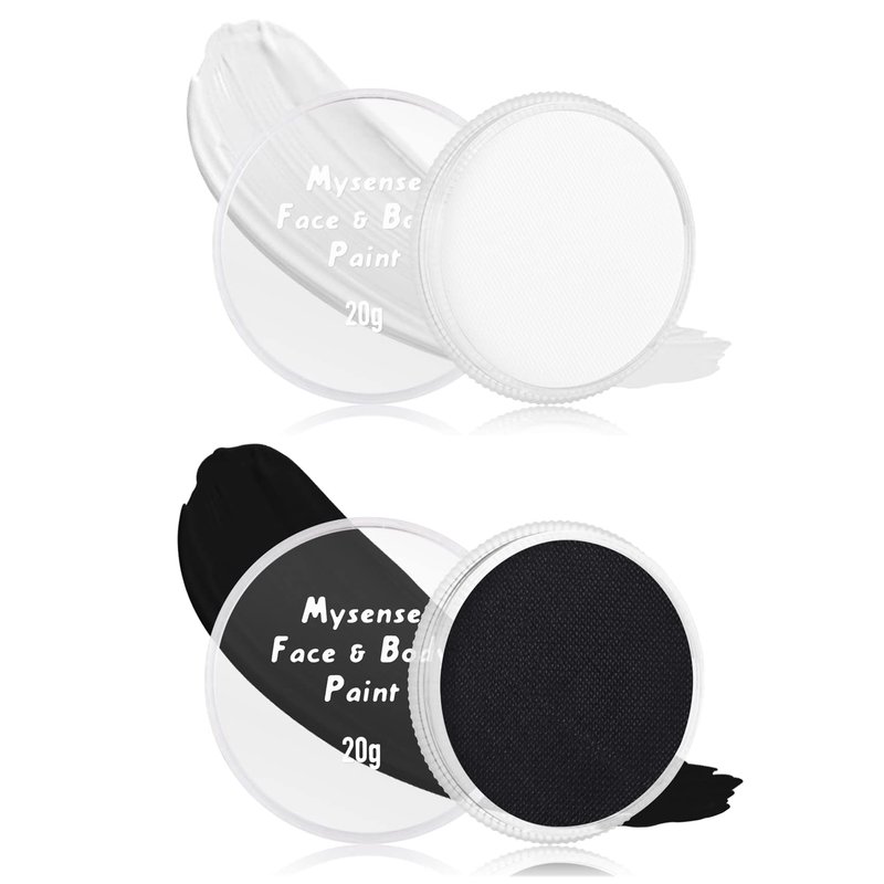 Mysense Clown White Black Face Body Paint Makeup,Water Activated Painting for Adults Children Sugar Skull Day of the Dead Skeleton Joker Ghost Zombie Cosplay SFX Costume for Festivals Halloween,40g