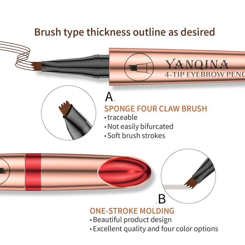 A liquid eyebrow pencil with 4 micro-fork tips that presents more vivid and natural eyebrow makeup, easy to use, waterproof, smudge-proof, long-wearing.