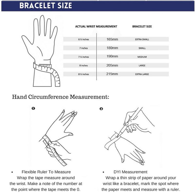 Made from high-quality Volcanic Stone that carries the symbolic effects of earth and fire. You will definitely enjoy the compliments while wearing this beautiful piece of jewelry. (See product’s images above). The size of the kid's bracelets is 6.3 inches and adjusts from that point, it might fit the age ranges between 6 to 13 years old, this might vary. The Mystiqs bracelets are built in a stretching elastic band. We recommend following measuring instructions before purchasing the Mystiqs bracelets. Wrap a tape measure around the wrist on which you plan to wear your Mystiqs bracelet. Make a note of the number at the point where the tape meets the 0. To ensure the bracelet fits comfortably, add 0.59 inches. You can then add or subtract inches according to whether you prefer a loose, exact or tight fit. WARNING: CHOKING HAZARD! Small parts Not for children under 3 yrs.