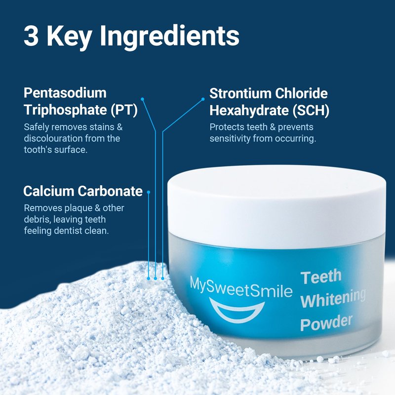 - ZERO SENSITIVITY & 100% PEROXIDE-FREE - Finally, a teeth whitener that's both gentle and effective. Unlike peroxide-based formulas, which cause tooth sensitivity and gum irritation, our peroxide-free teeth whitening powder ensures quick whitening results without compromising your oral health. Rest assured, all MySweetSmile products have undergone rigorous testing and have earned UK, EU, and US CPSR certifications, along with the seal of approval from dentists.