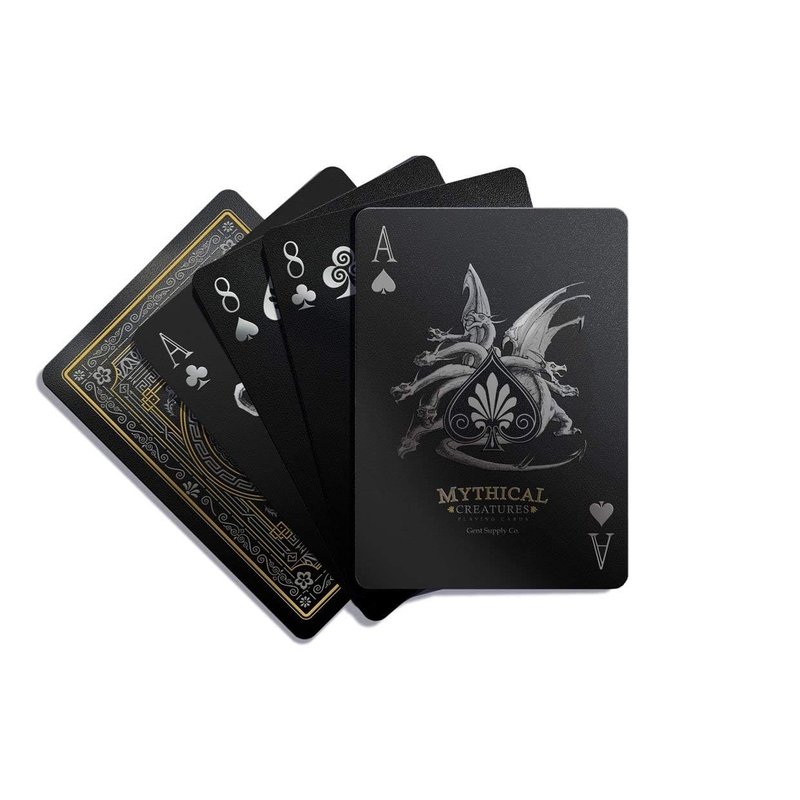 Mythical Creatures Playing Cards - Black, Silver & Gold Edition | Waterproof PVC | Greek, Norse, Egyptian, East Asian Designs | Custom Hand-Drawn Art